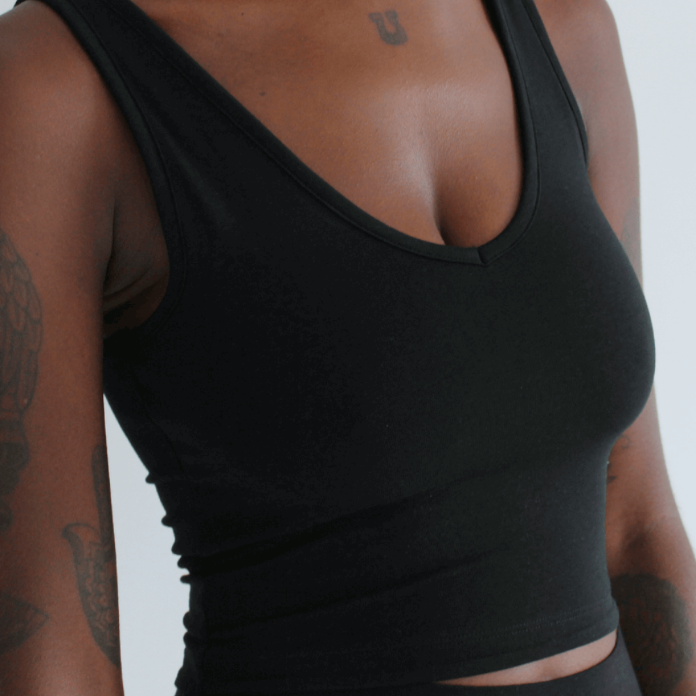 Organic Cotton V-Neck Cropped Tank Top, Black