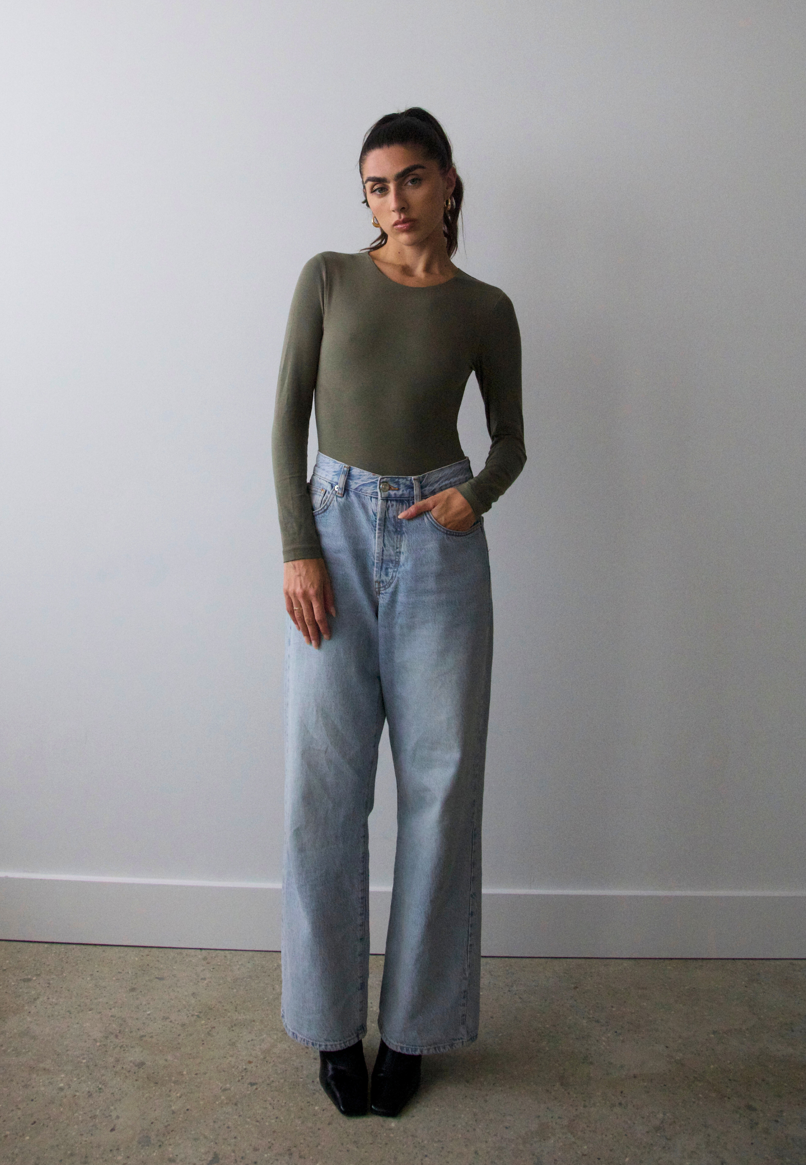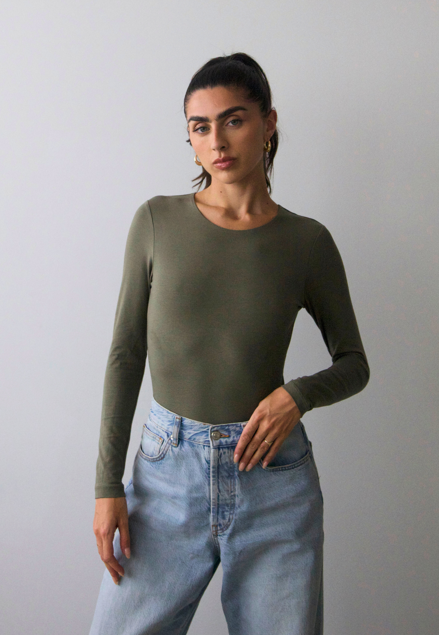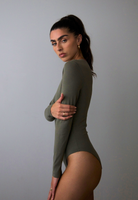 Organic Cotton Long Sleeve Crew Bodysuit, Burnt Olive