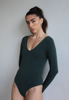 Organic Cotton Long Sleeve V-Neck Bodysuit, Forest Green