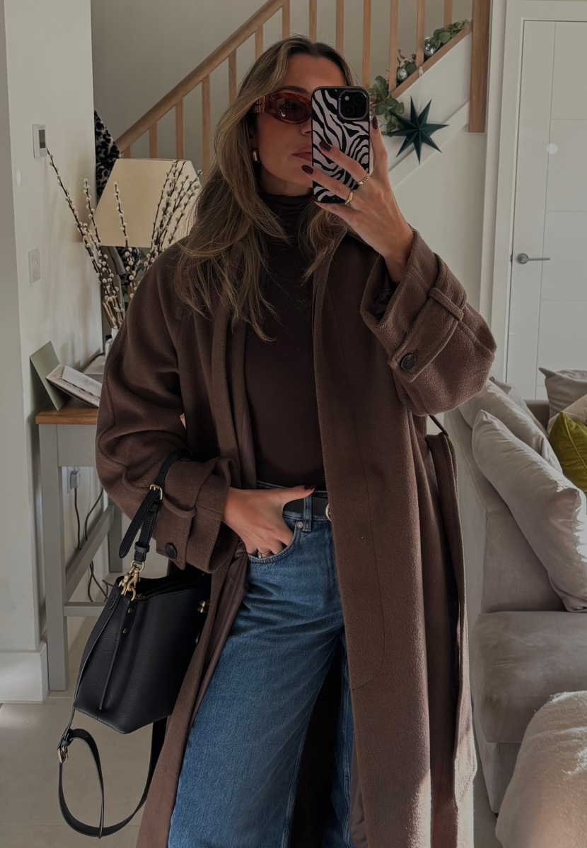 Organic Cotton Long Sleeve Roll-Neck Bodysuit, Hot Fudge