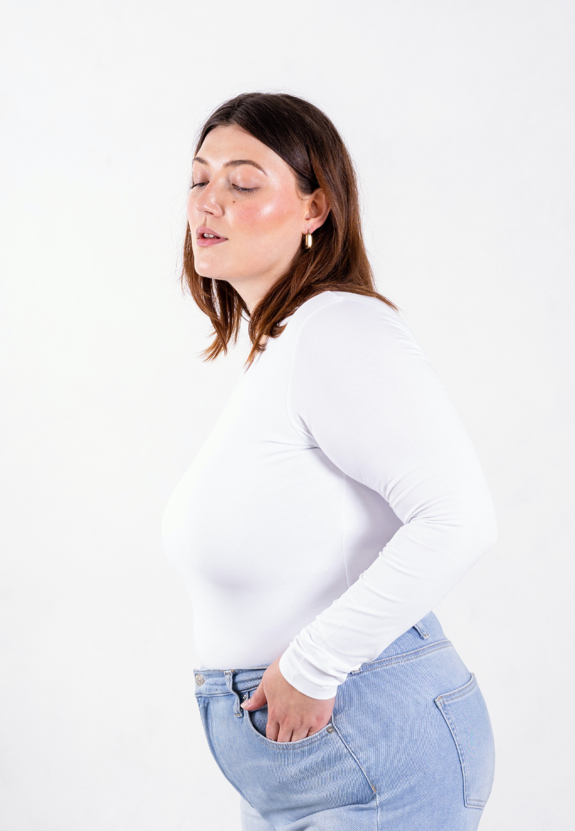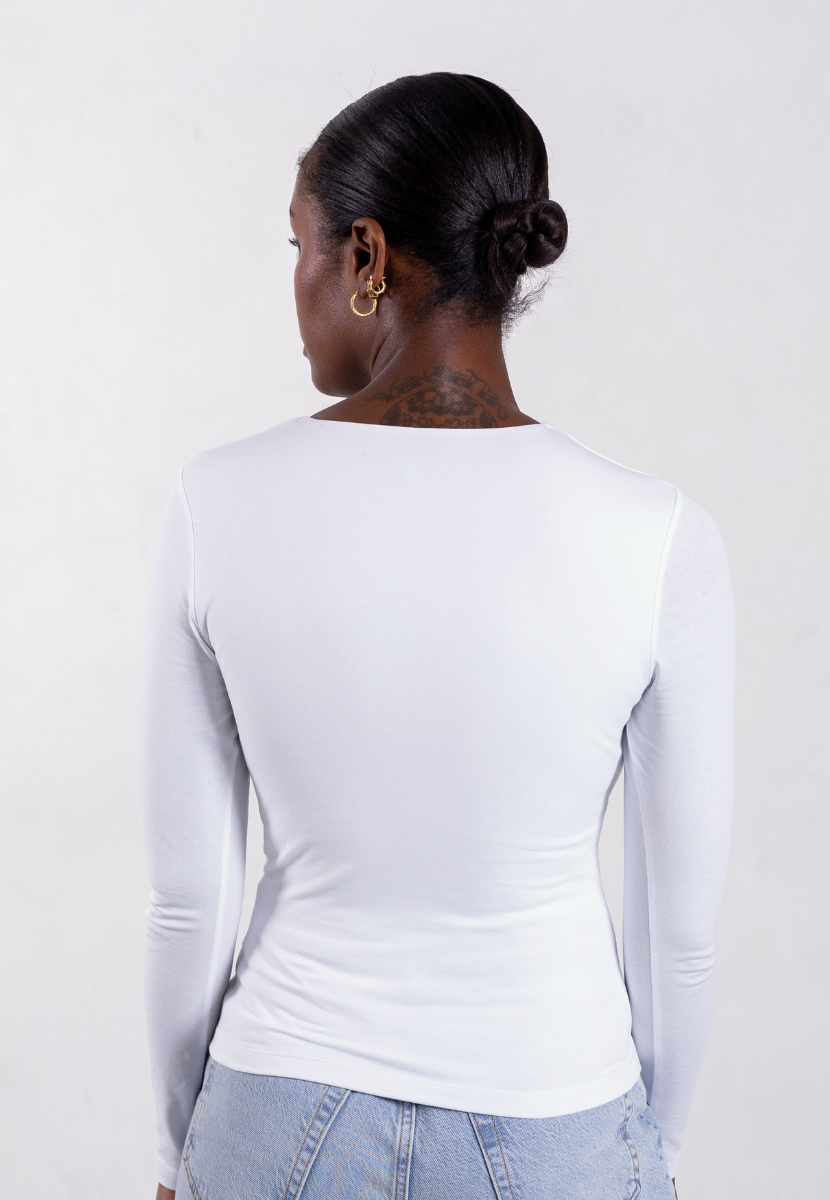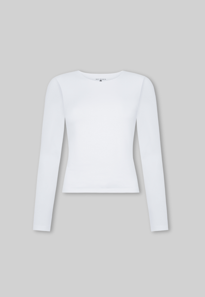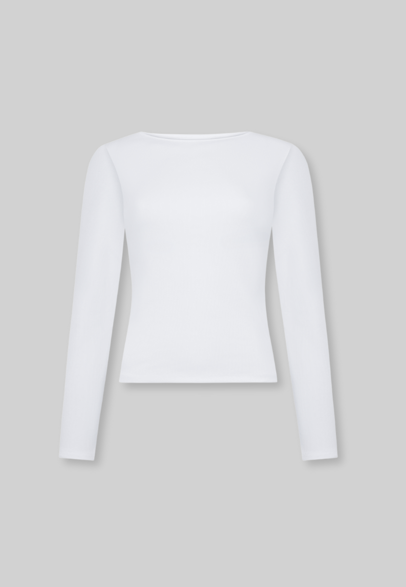 Ribbed Boat Neck Long Sleeve T-Shirt, White