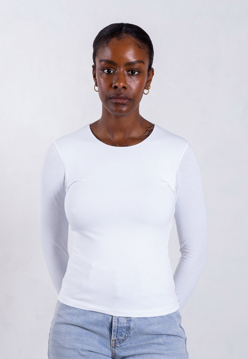 Organic Cotton Crew Long Sleeve T-Shirt, White