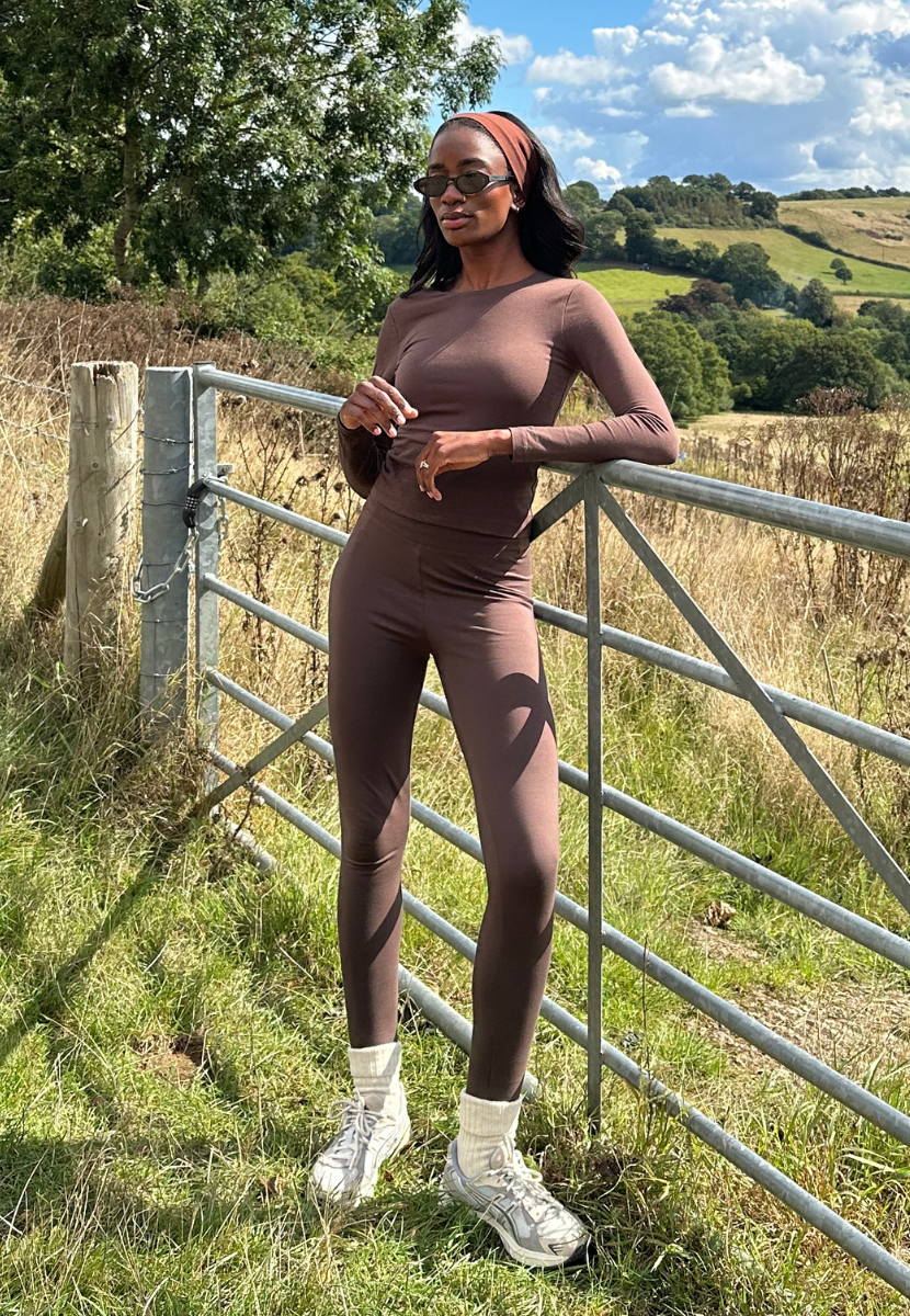 Organic Cotton Crew Long Sleeve T-Shirt, Hot Fudge