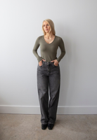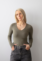 Organic Cotton V-Neck Long Sleeve T-Shirt, Burnt Olive
