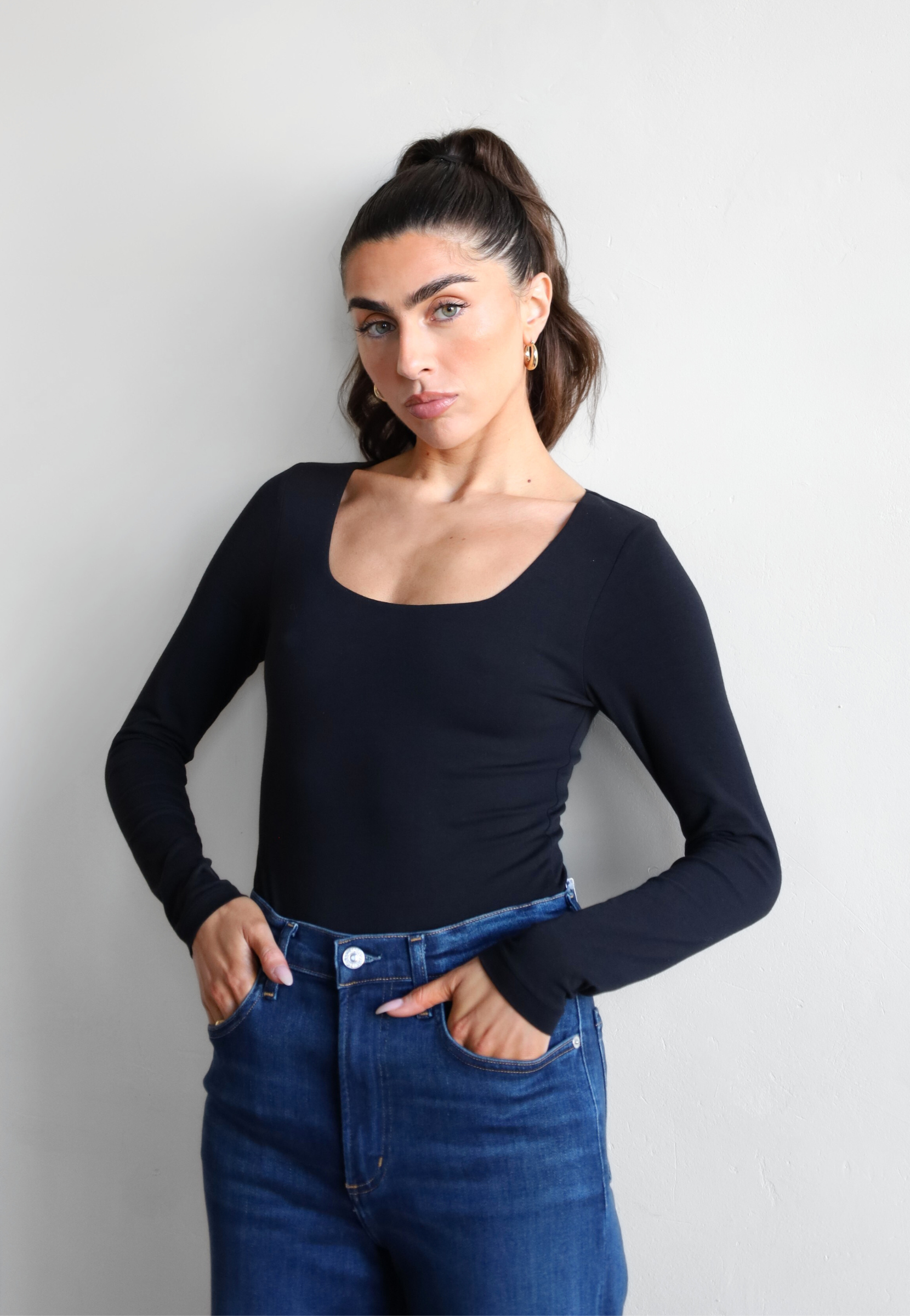 Made of super-soft, double-lined organic cotton, the Long Sleeve Square-Neck Bodysuit features a full brief, wide gusset, and purposefully placed snap closure avoiding wedgies, pinching and rubbing - promoting all-day comfort.