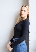 Your skin's new best friend: for those who care what touches their skin all day. Thoughtfully designed to be the best t-shirt you own, this form-fitting, ultra-flattering long-sleeve t-shirt is perfect for everyday all-day wear. Made from double-lined certified Organic Cotton, undeniably comfortable, and visibly exceptional.