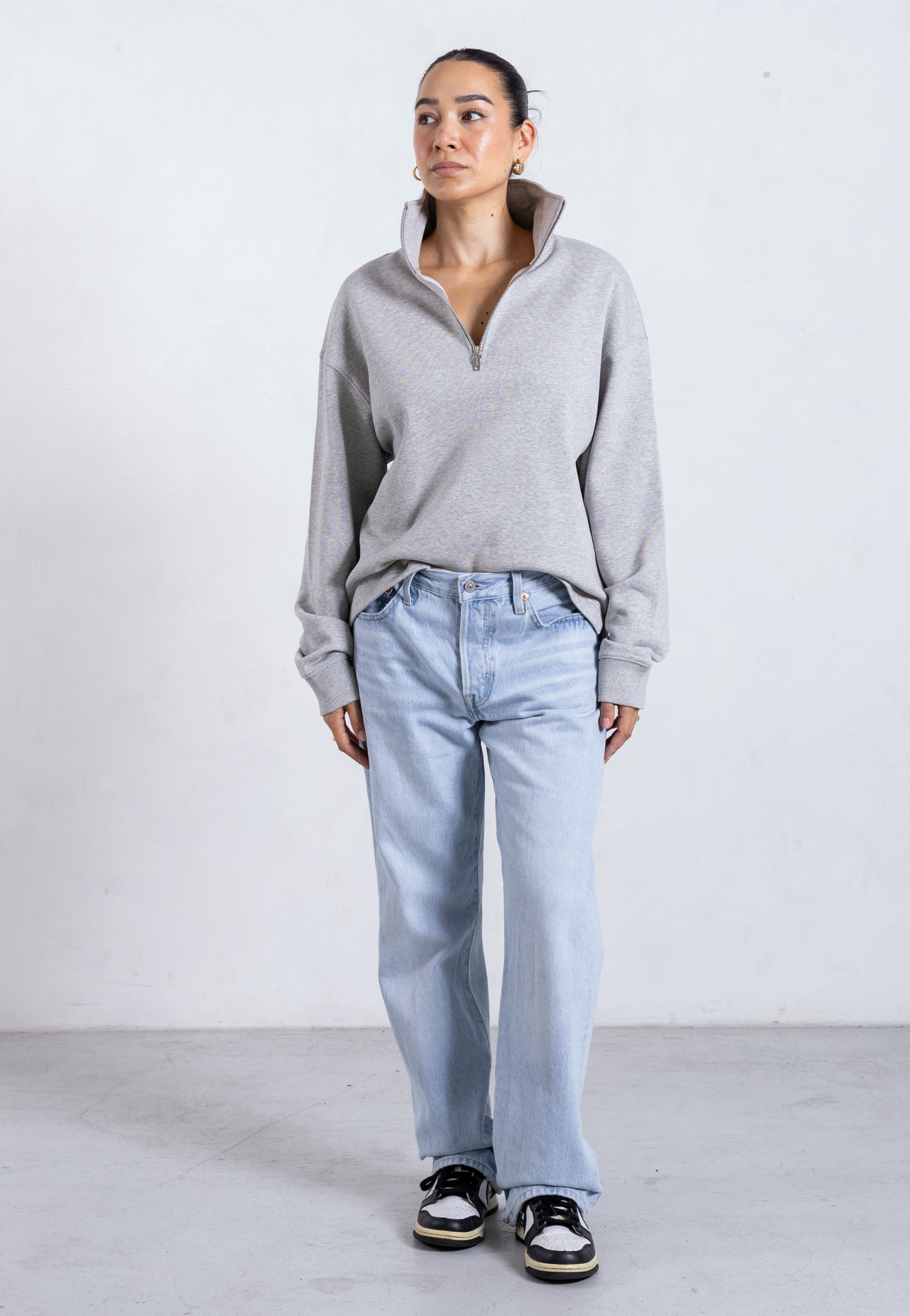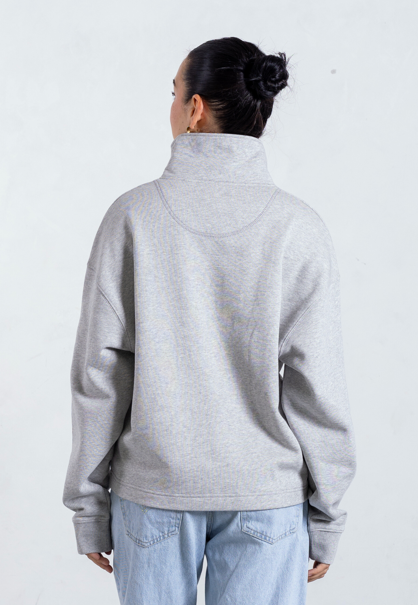 Organic Cotton Quarter Zip Sweatshirt, Light Grey Marl