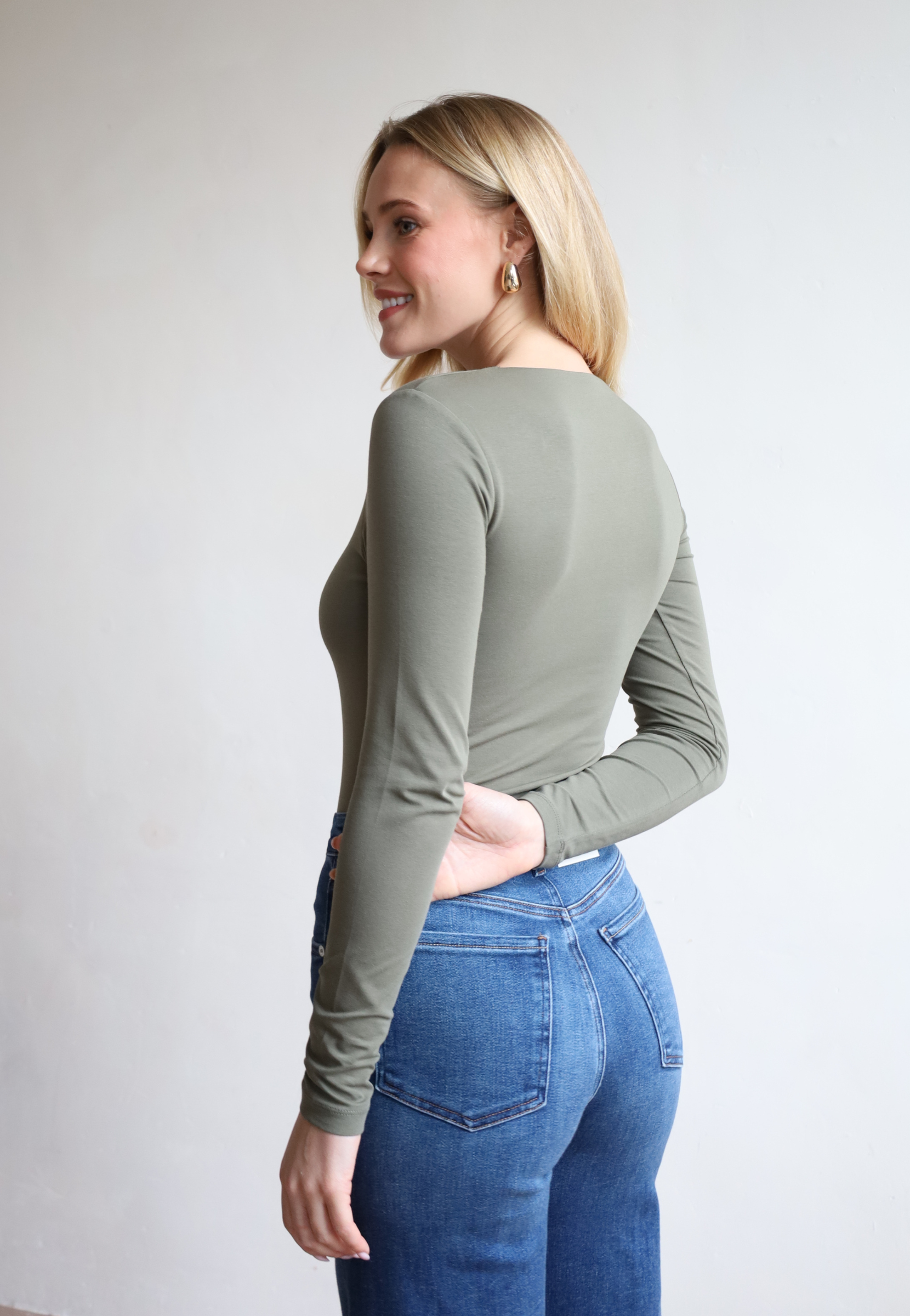 Long Sleeve Square-Neck T-Shirt, White