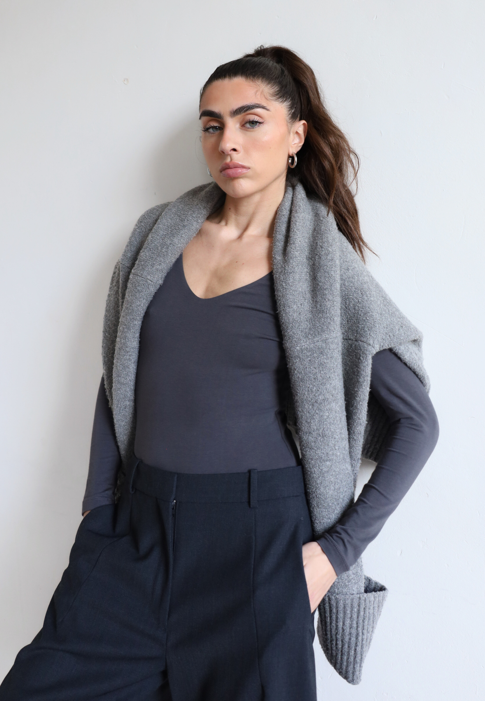Organic Cotton V-Neck Long Sleeve T-Shirt, Charcoal