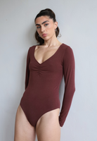 A cute twist on our classic V-Neck bodysuit, featuring an elasticated bow to give a sweetheart neckline. Long sleeves, full briefs with purposefully placed snap closures to avoid discomfort. Made of double-lined, comfortable certified Organic Cotton. A perfectly versatile piece, to be dressed up or down whatever the occasion.